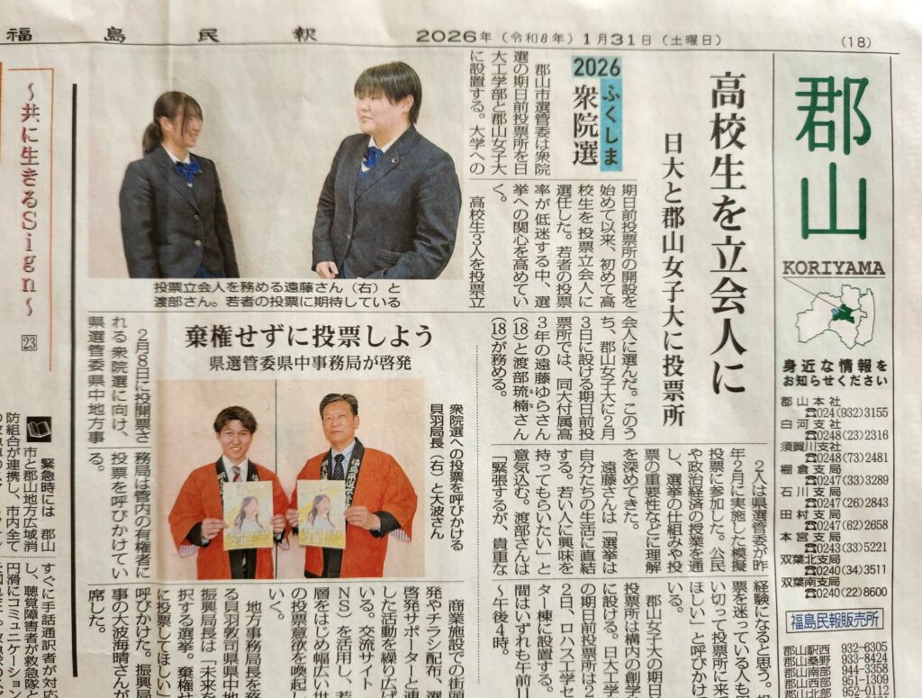本校3年生の生徒2名が、今回の衆議院議員総選挙における期日前投票所の立会人として参加しました。